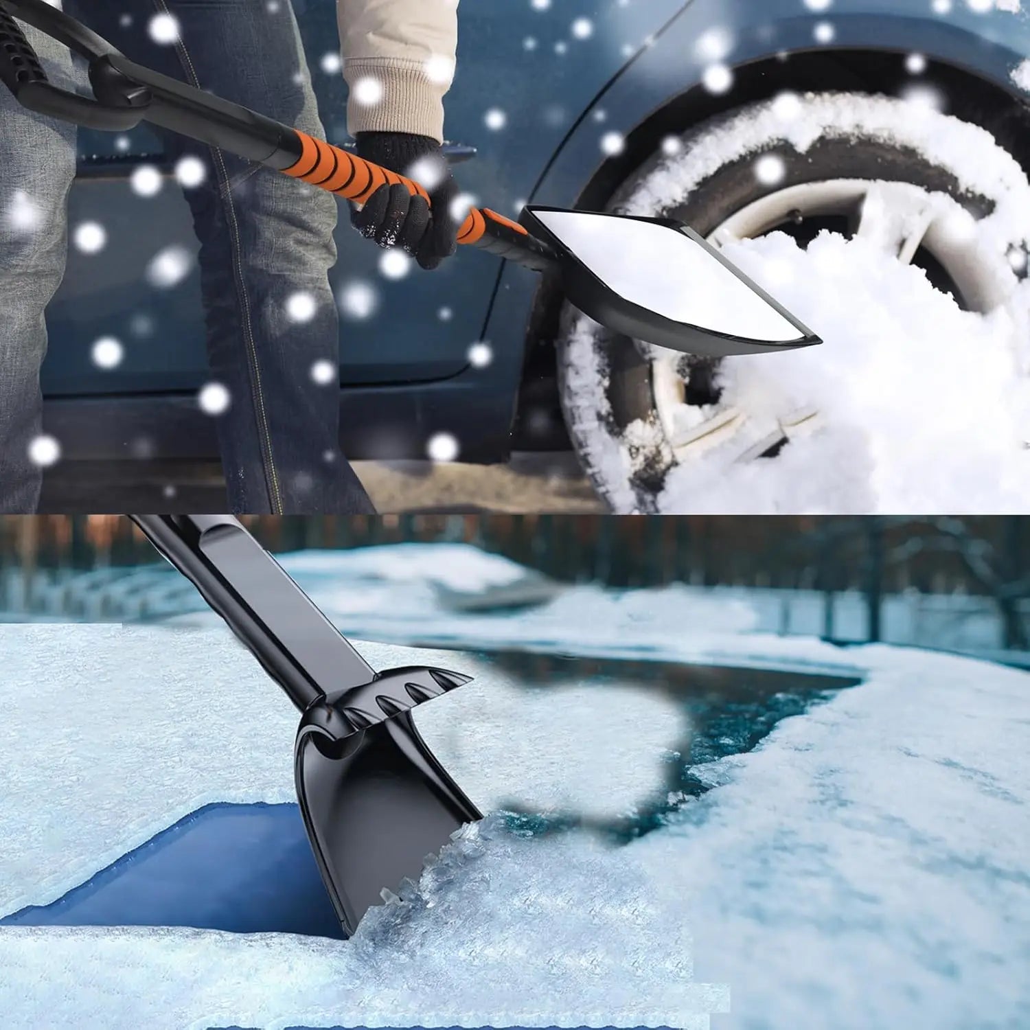 Der weiche EVA-Komfortgriff liegt warm und rutschfest in der Hand und macht die Nutzung selbst bei Minusgraden angenehm. Alle Teile lassen sich trennen und kompakt verstauen – perfekt für jedes Auto.