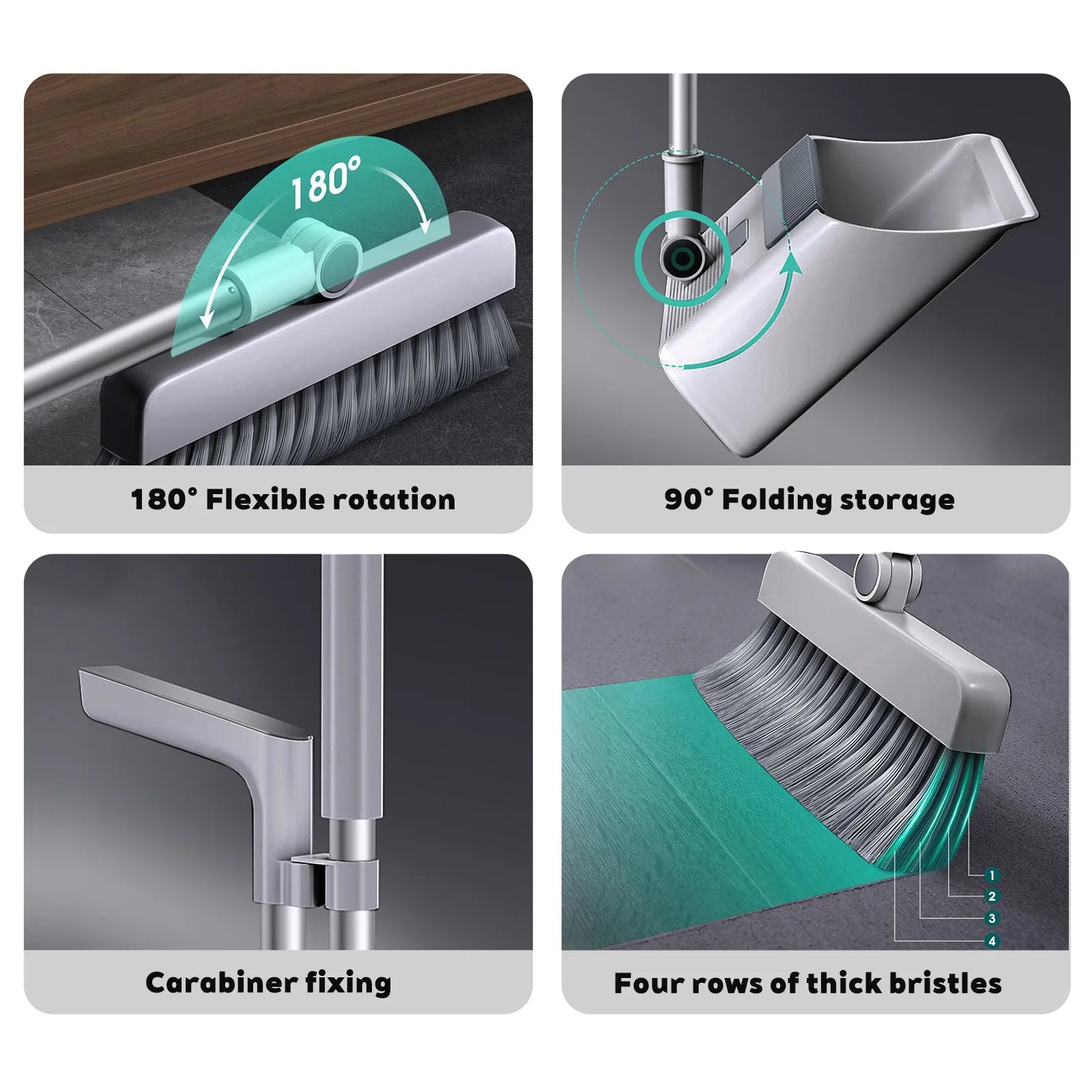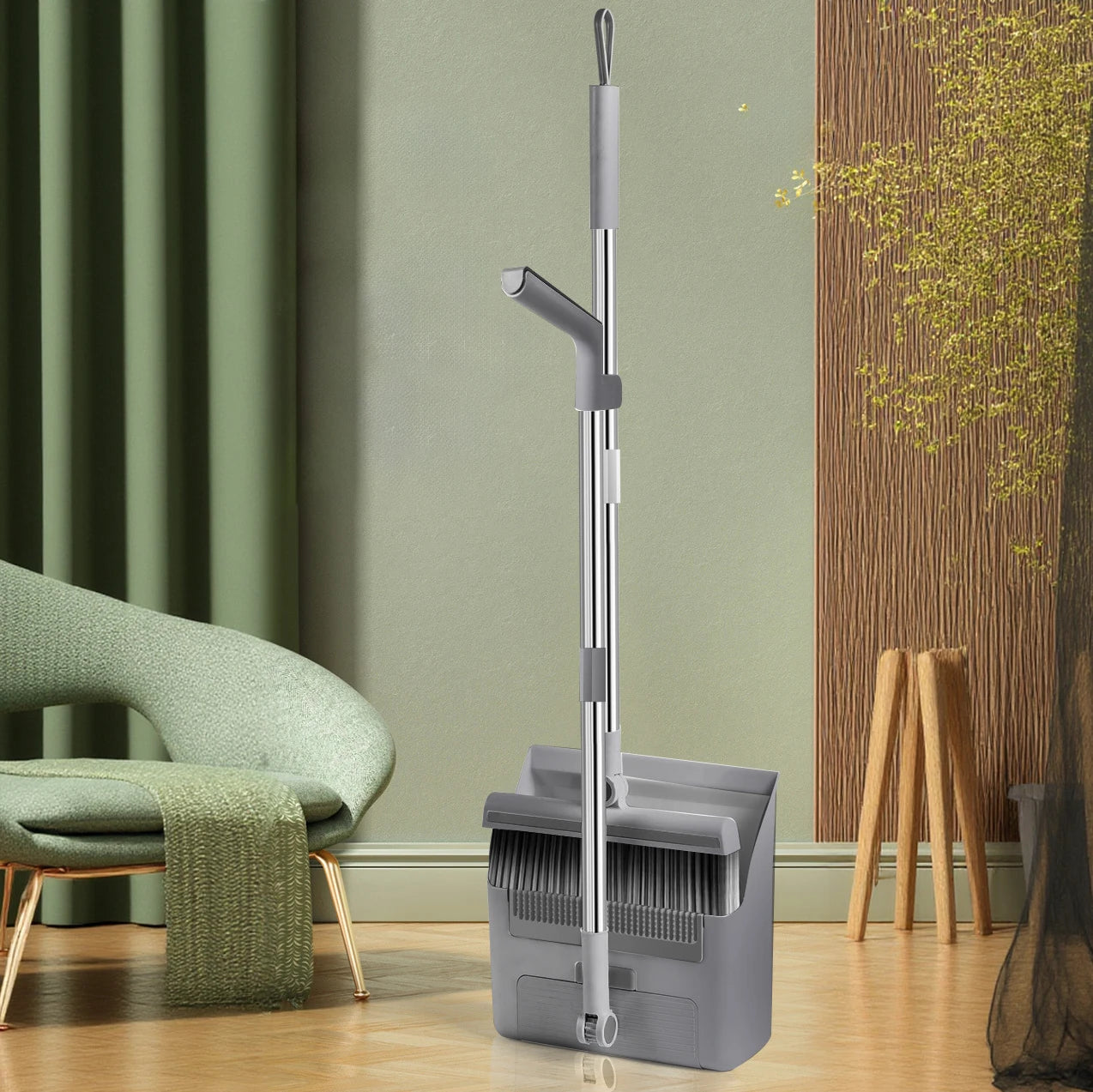 3-in-1 Premium Besen-Set mit selbstreinigender Kehrschaufel – Drehbar, platzsparend und ideal für Innen & Außen