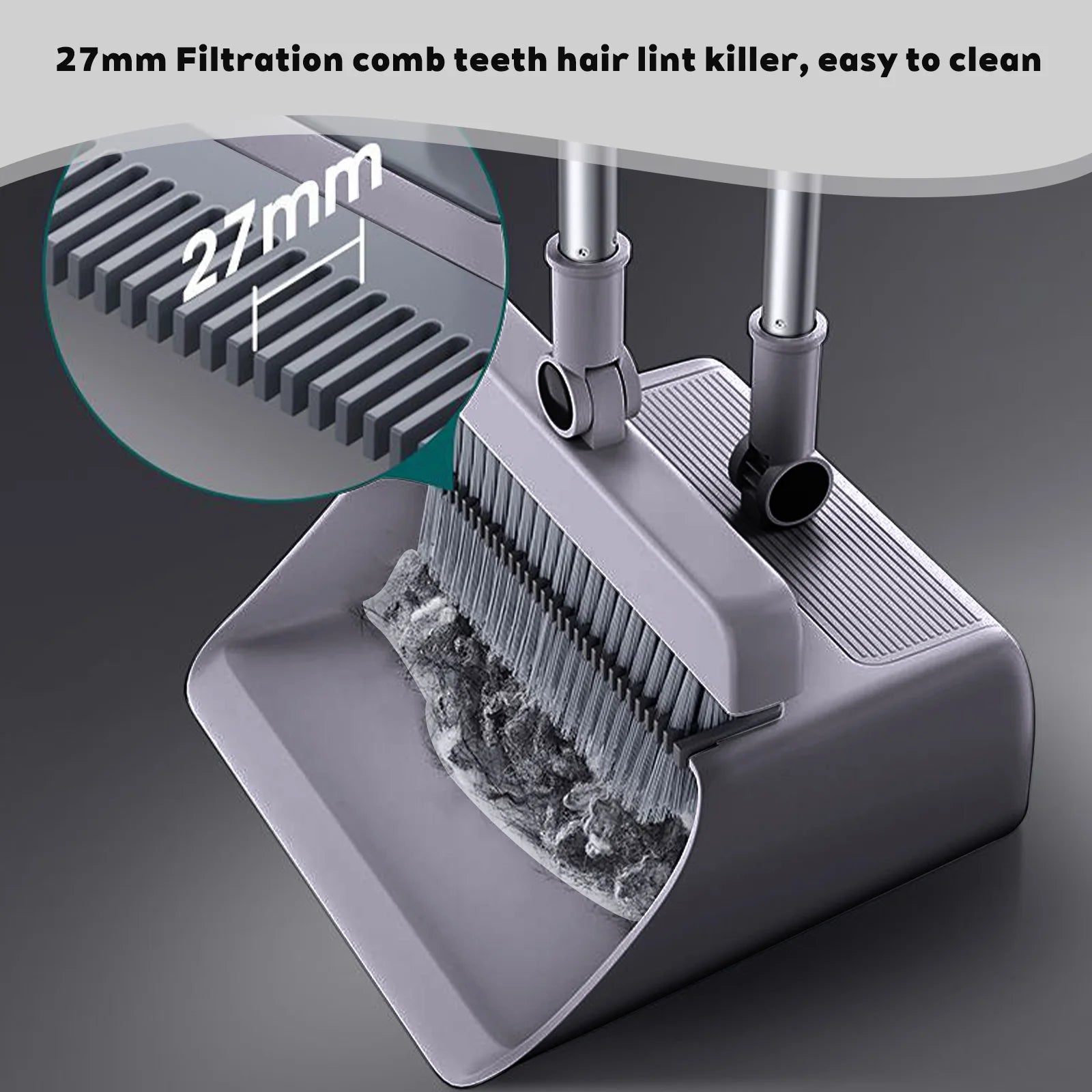 Dank der integrierten Kammzähne entfernst du Haare, Staub und Fusseln direkt vom Besen – komplett freihändig. Kein Ziehen, kein Schmutz zwischen den Borsten.