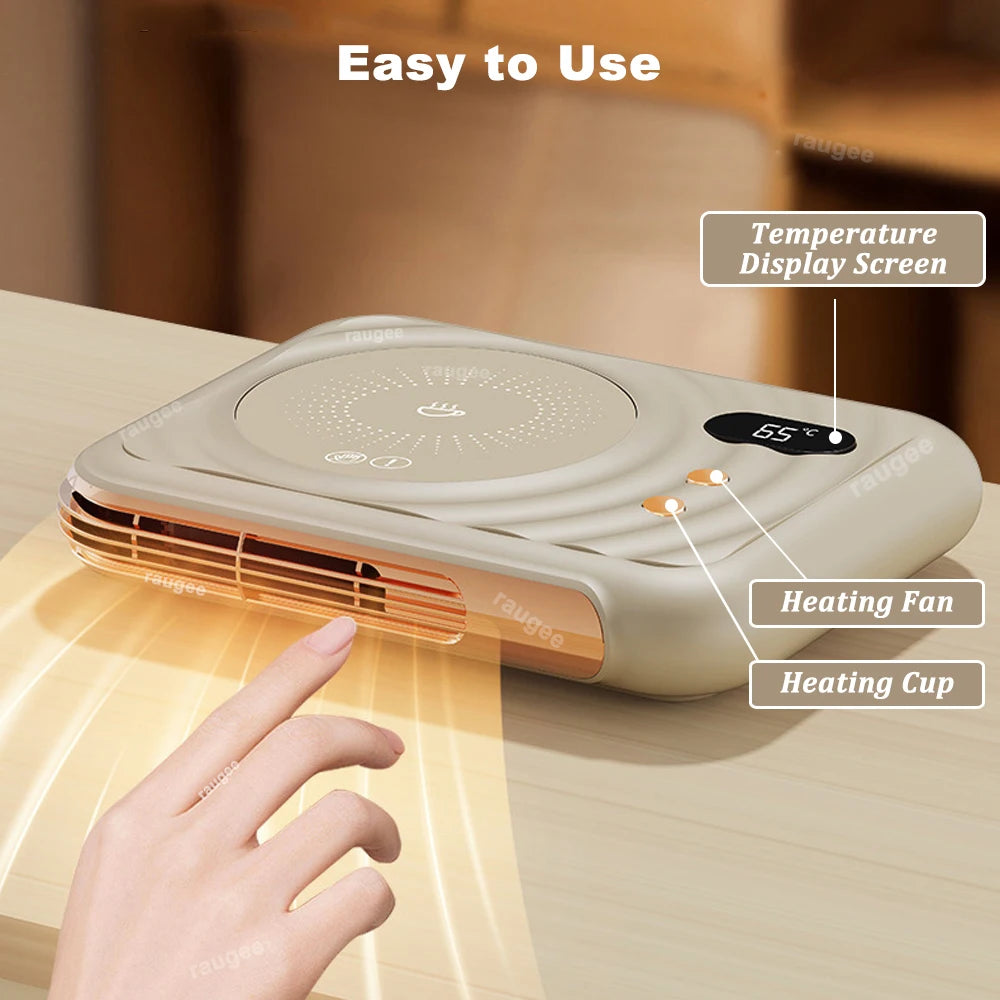 • 2-in-1 Design: Becherwärmer + Mini-Heizlüfter