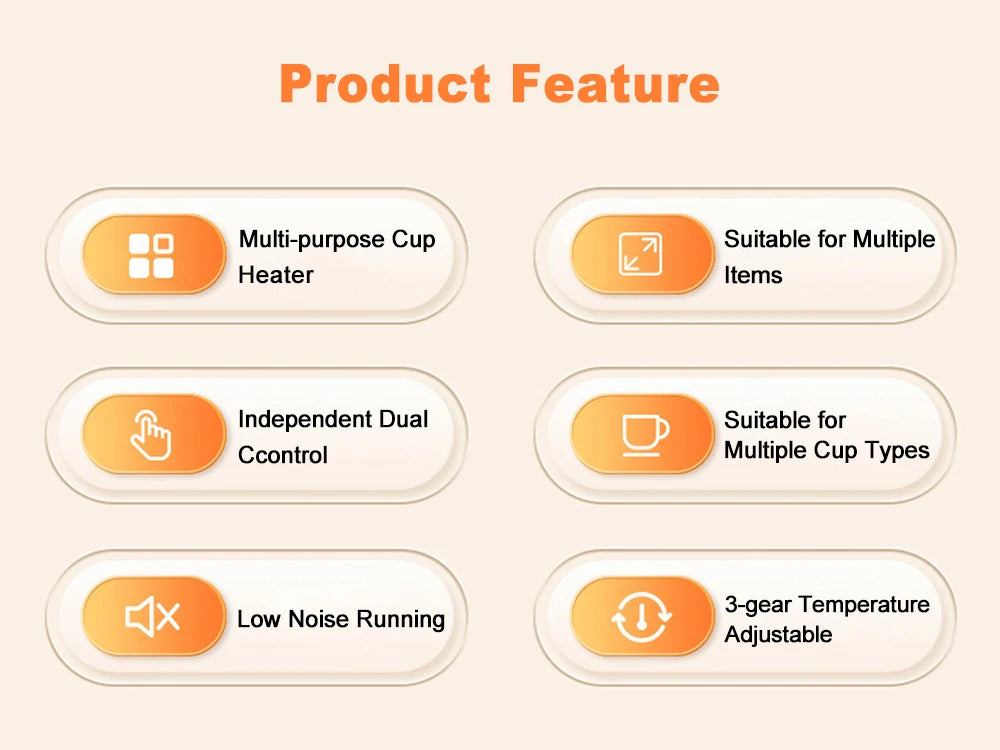 Der Becherwärmer bietet drei präzise Temperaturstufen (55°C, 65°C, 75°C), sodass du dein Getränk immer genauso heiß hältst, wie du es möchtest. Er funktioniert mit allen gängigen Tassenarten, von Glas über Porzellan bis Edelstahl – sogar Babyflaschen und Box-Milch.